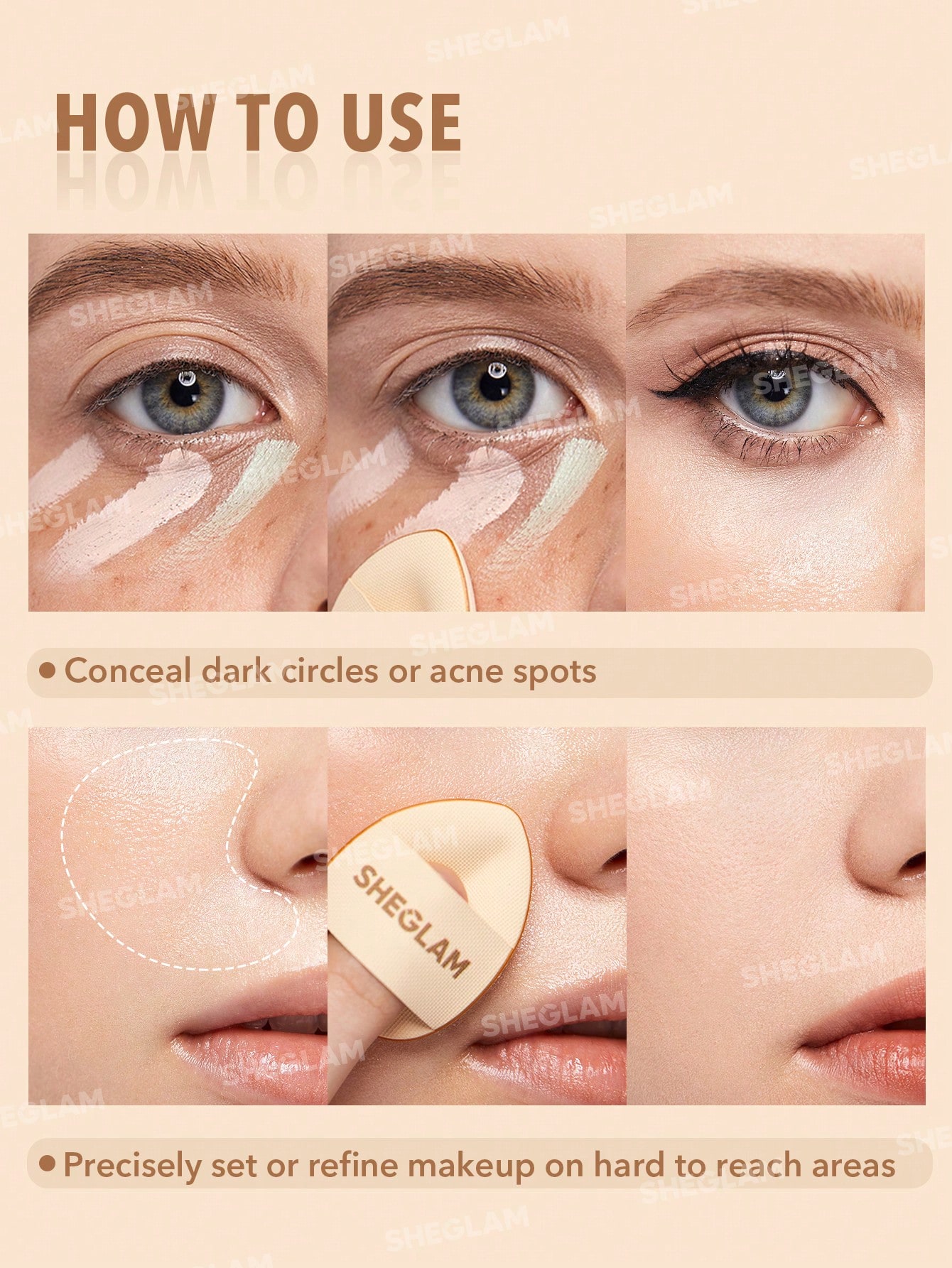 قابلیت کاربرد برای کرمپودر، کانسیلر، کانتور و هایلایتر